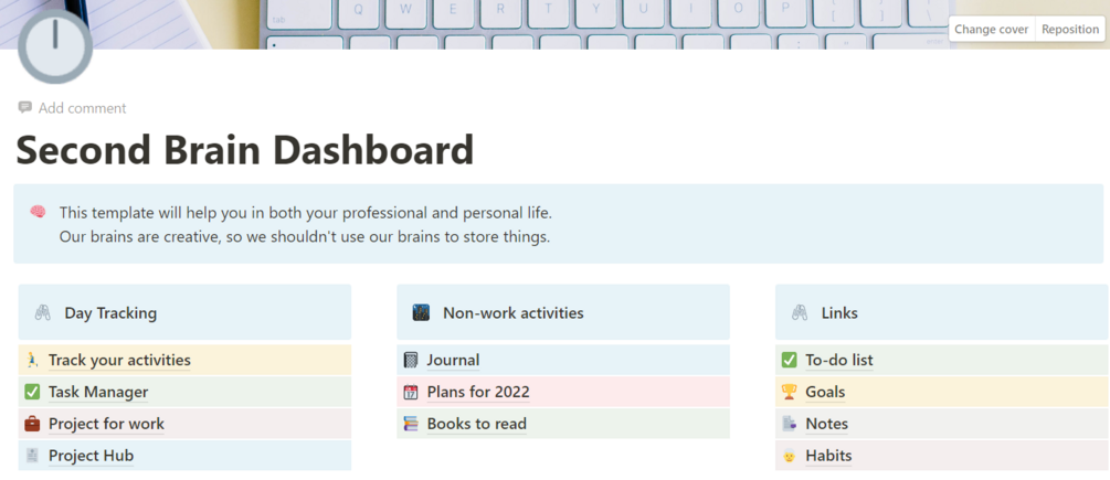 This template will help you in both your professional and personal life. Our brains are creative, so we shouldn't use our brains to store things.